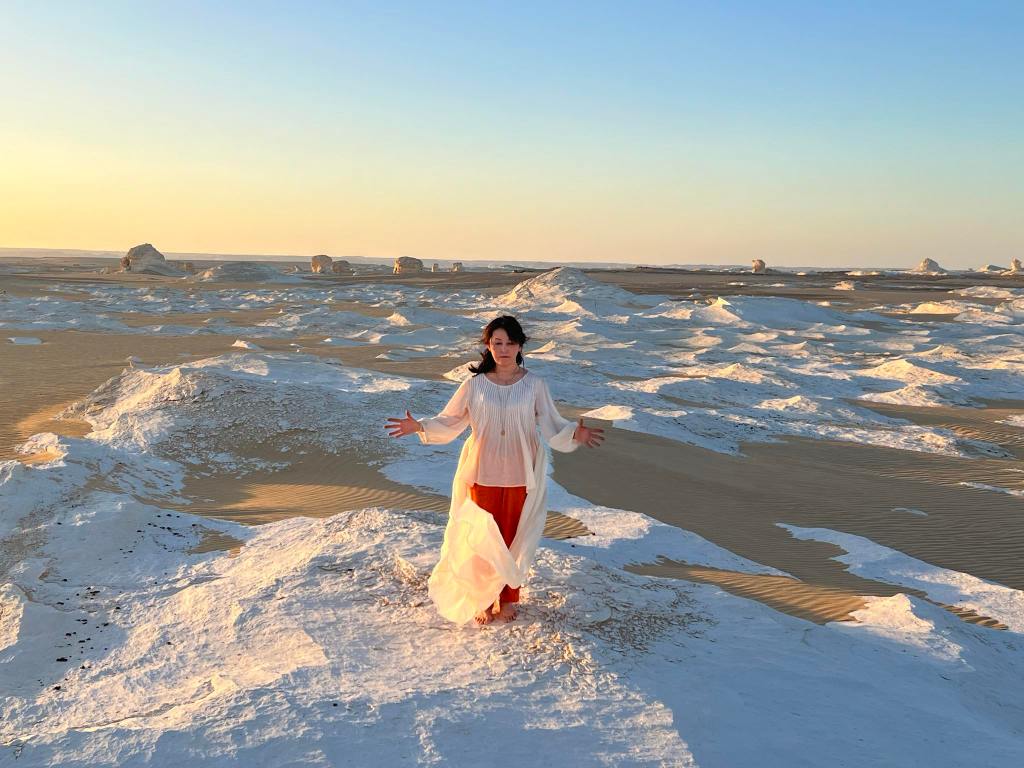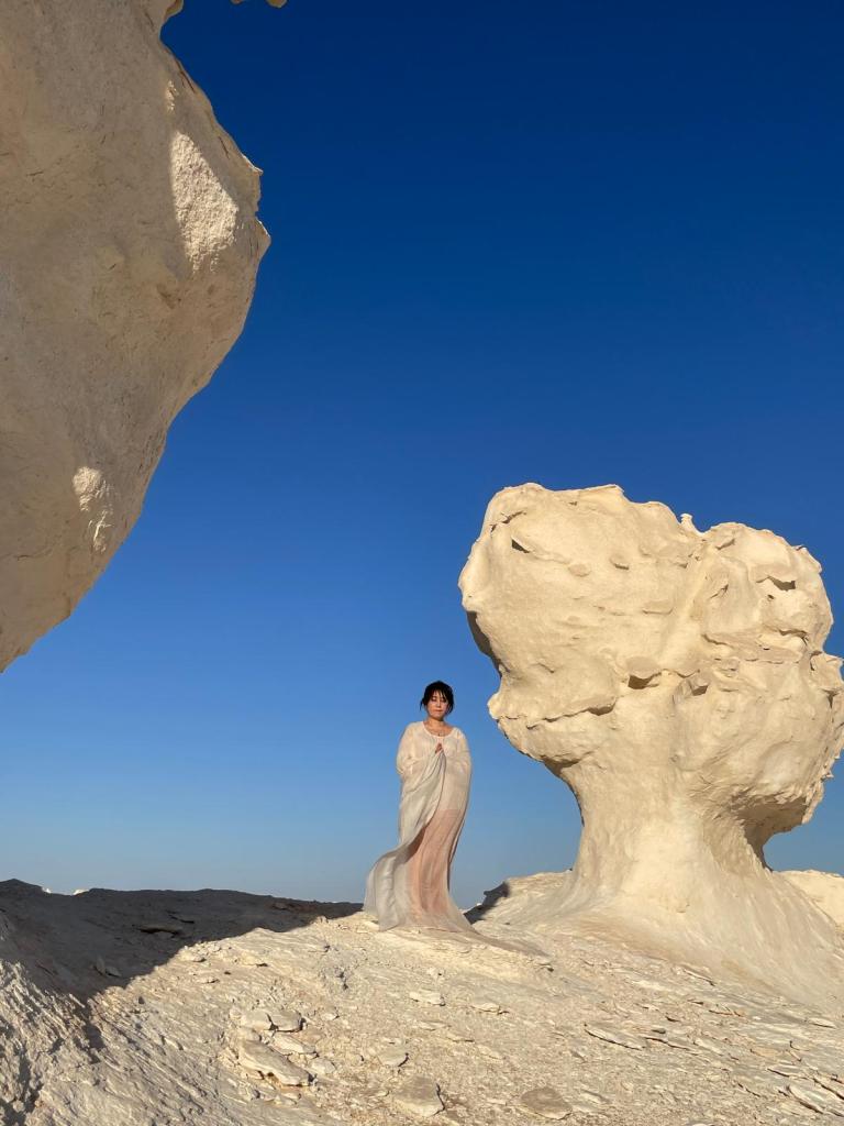 動画の最後には、白砂漠にあるクリスタルマウンテンにてプレゼントされたクリスタルを使ったヒーリングも行っています。