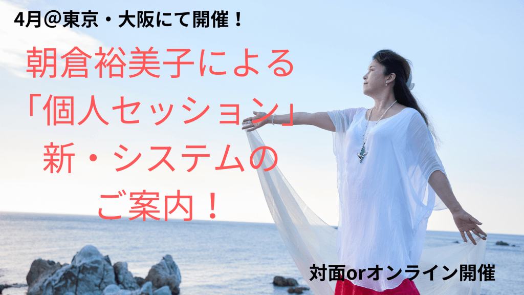 4月に開催する朝倉による個人セッションのスケジュールと、新たなシステムについてご案内いたしますのでご一読ください。